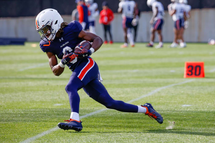 Over 100 photos from Auburn Daily's Eric Starling during the window where media was able to snap photos and take video are located below. There are several pictures of Auburn's new wide receivers. Freshmen wideouts Cam Coleman and Bryce Cain are pictured often below and made an impact during the viewing window. Both Coleman and Cain showed a lot of upside despite getting reps in only a few practices at the college level.