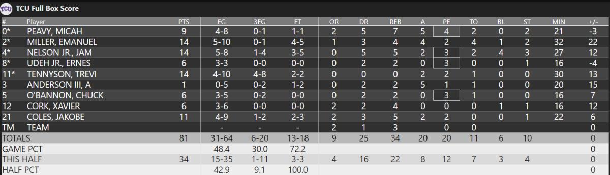 The West Virginia Mountaineers (8-16, 3-8) dropped their third consecutive game following the 81-65 loss to the TCU Horned Frogs (17-7, 6-5) Monday night.