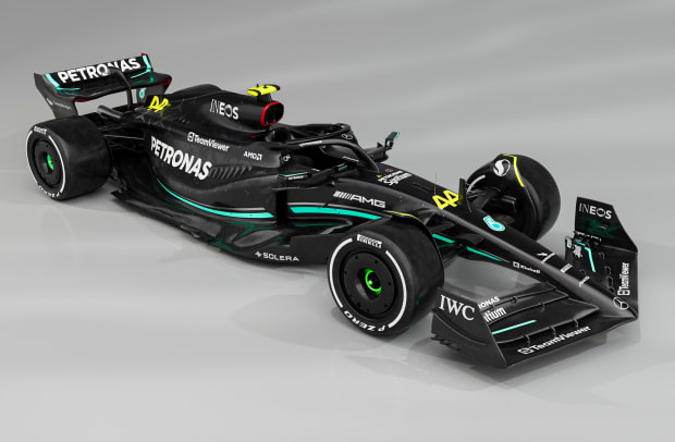 This prompted a precautionary removal of the wing, and the FIA later censured the design. However, Ferrari's front wing design for the SF23 also includes exactly five fins per wing side, indicating a similar approach to that of Mercedes.