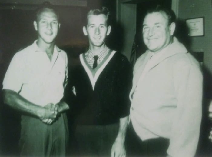 A young Arnold Palmer, left, with Vince Yanovitch, center, and Harry Obitz pictured at the Shawnee Inn and Golf Resort.