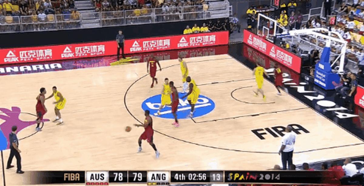 Here's an uncontested putback lay-up by Eduardo Mingas. After a jumper went up, multiple Australian players watched from well outside the basket area without moving into rebounding position.