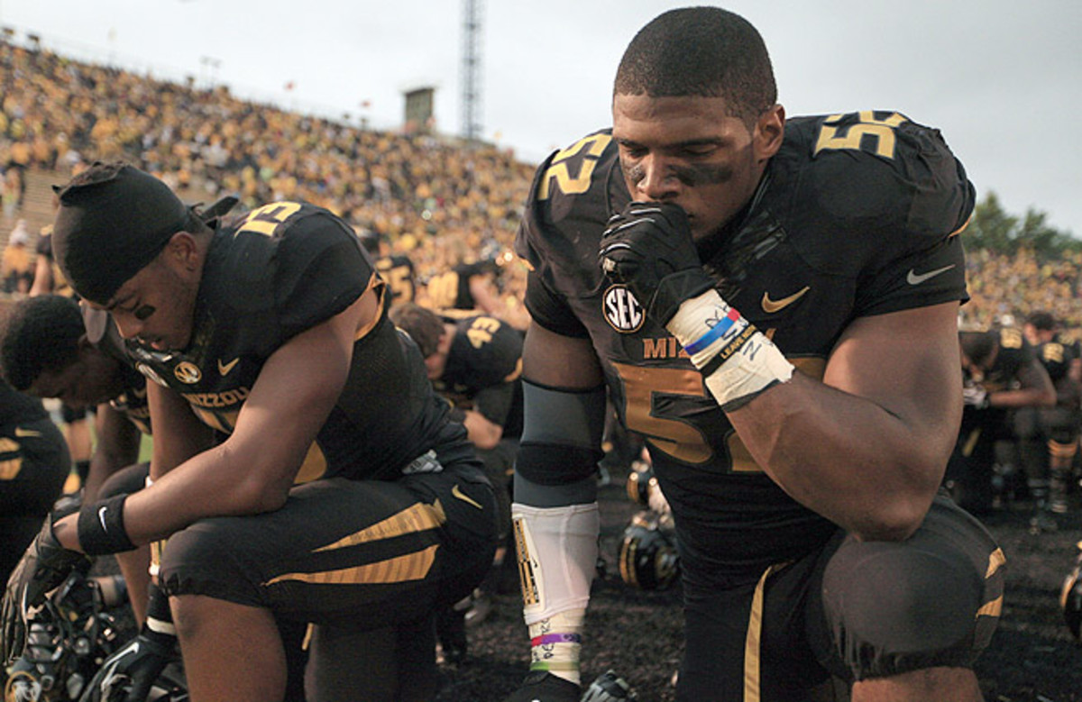 Michael Sam goes from the University of Missouri to the St. Louis Rams via the 249th overall pick.