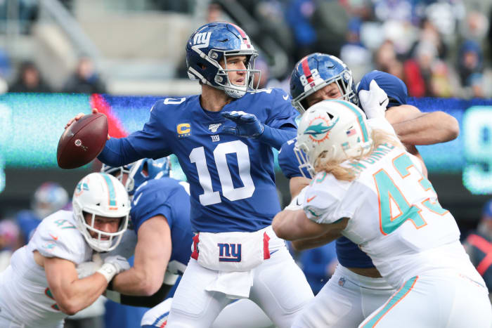 Manning's Giants career had its ups and downs. The team had an overall .500 record in regular-season games that he started. But Manning passed for 57,023 yards, set numerous Giants records and proved his leadership time and again. The two come-from-behind Super Bowl wins and MVP awards speak for themselves. It may be too early to speculate on Manning's chances for induction into the Pro Football Hall of Fame, but his place in this list of all-time great Giants is secure.